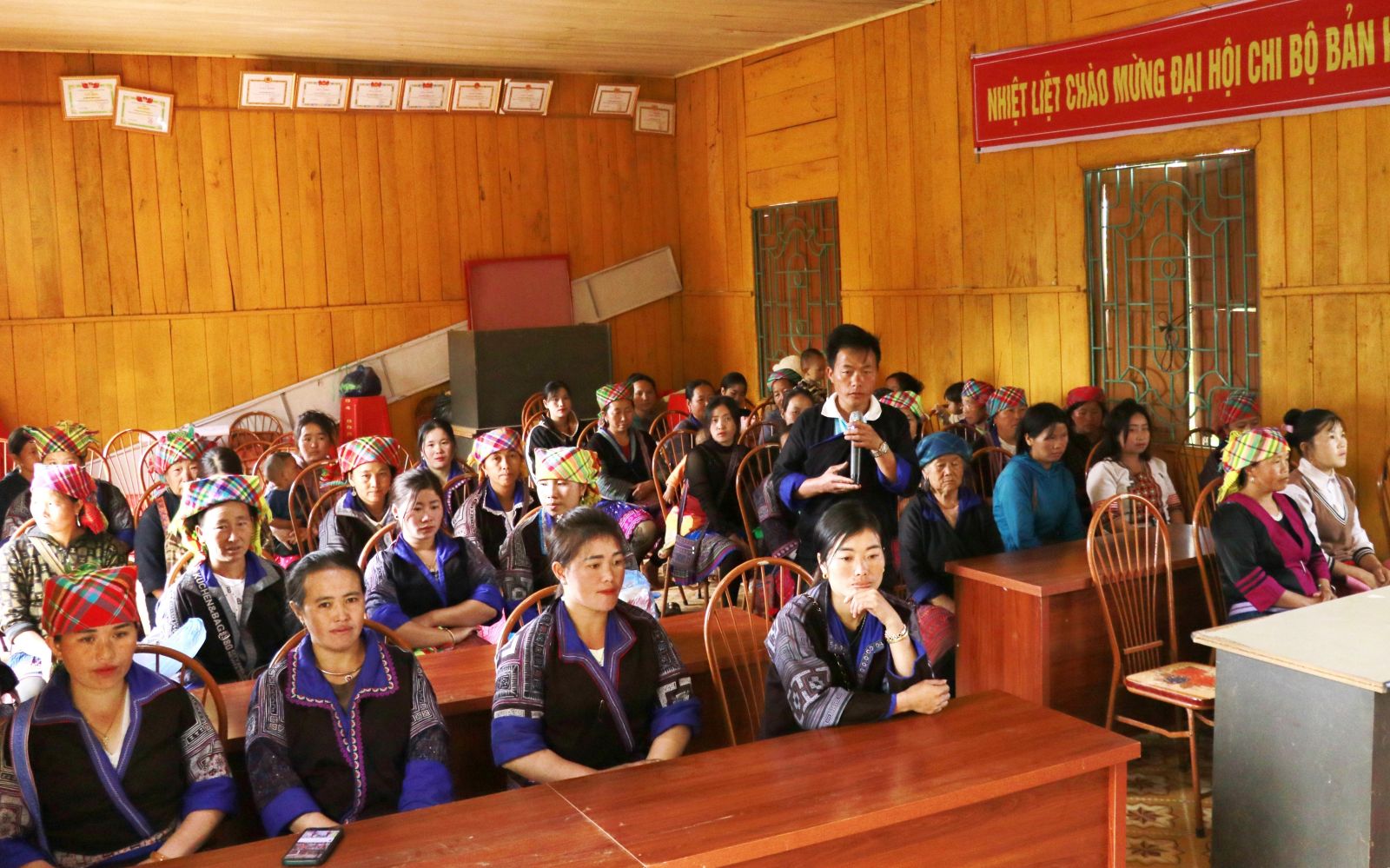 Gần 8 năm làm Bí thư Chi bộ bản Háng Blaha, xã Khao Mang, huyện Mù Cang Chải (Yên Bái), Vàng A Hồng (đứng giữa) giúp trên 40 hộ dân trong bản thoát nghèo, góp phần giảm tỷ lệ hộ nghèo từ trên 90% xuống còn khoảng 40% Ảnh: Phương Hoa - TTXVN