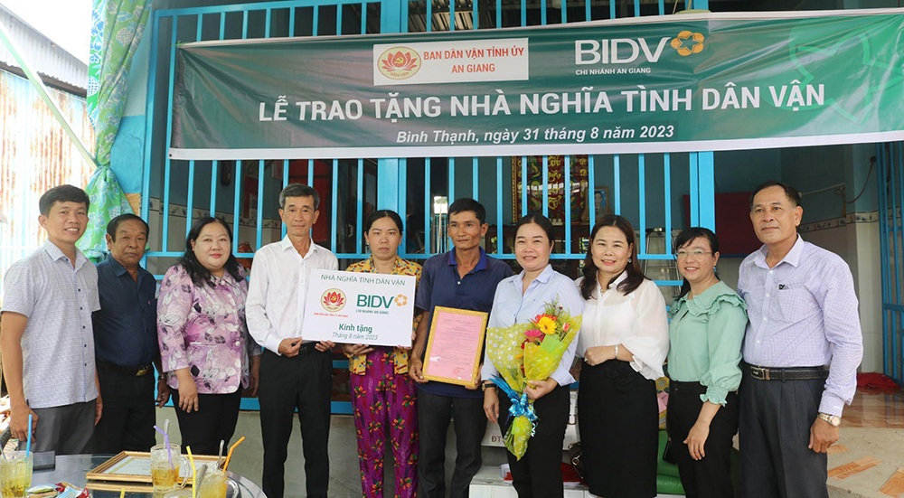 Ngoài ra, thực hiện chủ đề “Nghĩa tình dân vận với đồng bào dân tộc” - một trong những nội dung trọng tâm công tác dân vận của tỉnh, từ năm 2023, Ban Dân vận Tỉnh ủy đã ký kết Chương trình phối hợp với Ban Đại diện Phật giáo Hòa Hảo tỉnh xây dựng nhiều căn nhà “Nghĩa tình Dân vận” trong vùng đồng bào dân tộc thiểu số, miền núi, biên giới; ký kết Chương trình an sinh xã hội với Ban Trị sự Giáo hội Phật giáo Việt Nam tỉnh, gồm hỗ trợ thiết bị gia dụng cho các căn nhà “Nghĩa tình Dân vận”; hàng trăm suất học bổng cho học sinh nghèo có hoàn cảnh khó khăn; xây cầu “Dân vận” và tặng hàng ngàn phần quà Tết cho hộ nghèo. Tổng giá trị thực hiện 2 chương trình phối hợp gần 2 tỷ đồng.