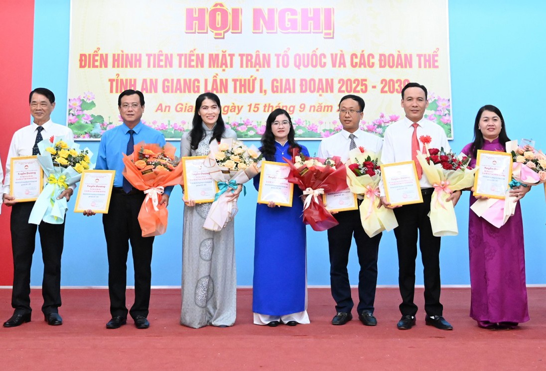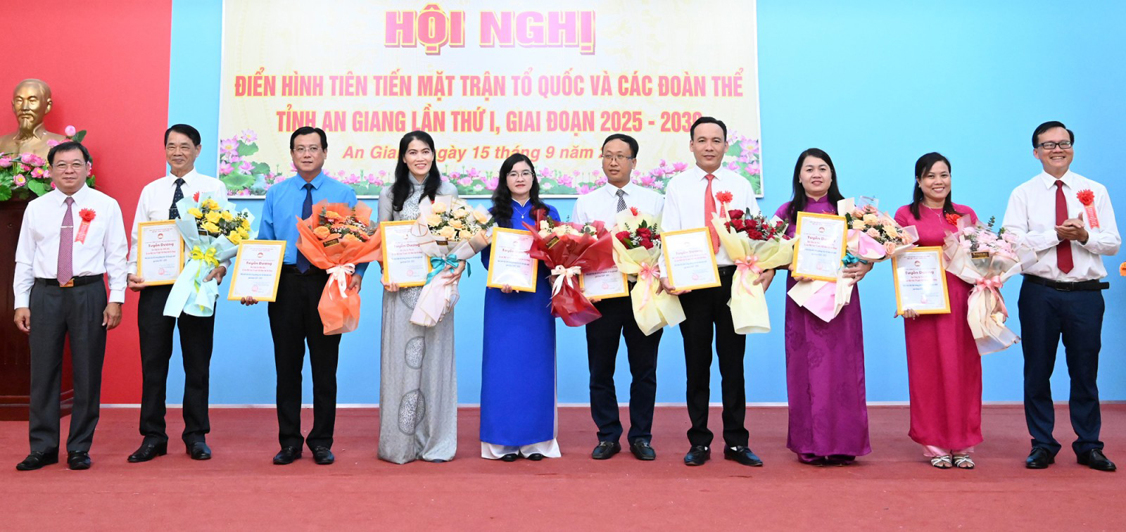 XDĐ - Ngày 15-9-2025, các tập thể, cá nhân có thành tích xuất sắc trong thực hiện phong trào thi đua yêu nước giai đoạn 2020 - 2025 đã được cơ quan Ủy ban Mặt trận Tổ quốc Việt Nam (MTTQ) tỉnh An Giang tuyên dương tại Hội nghị điển hình tiên tiến MTTQ và các đoàn thể tỉnh An Giang lần thứ I, giai đoạn 2025 - 2030.