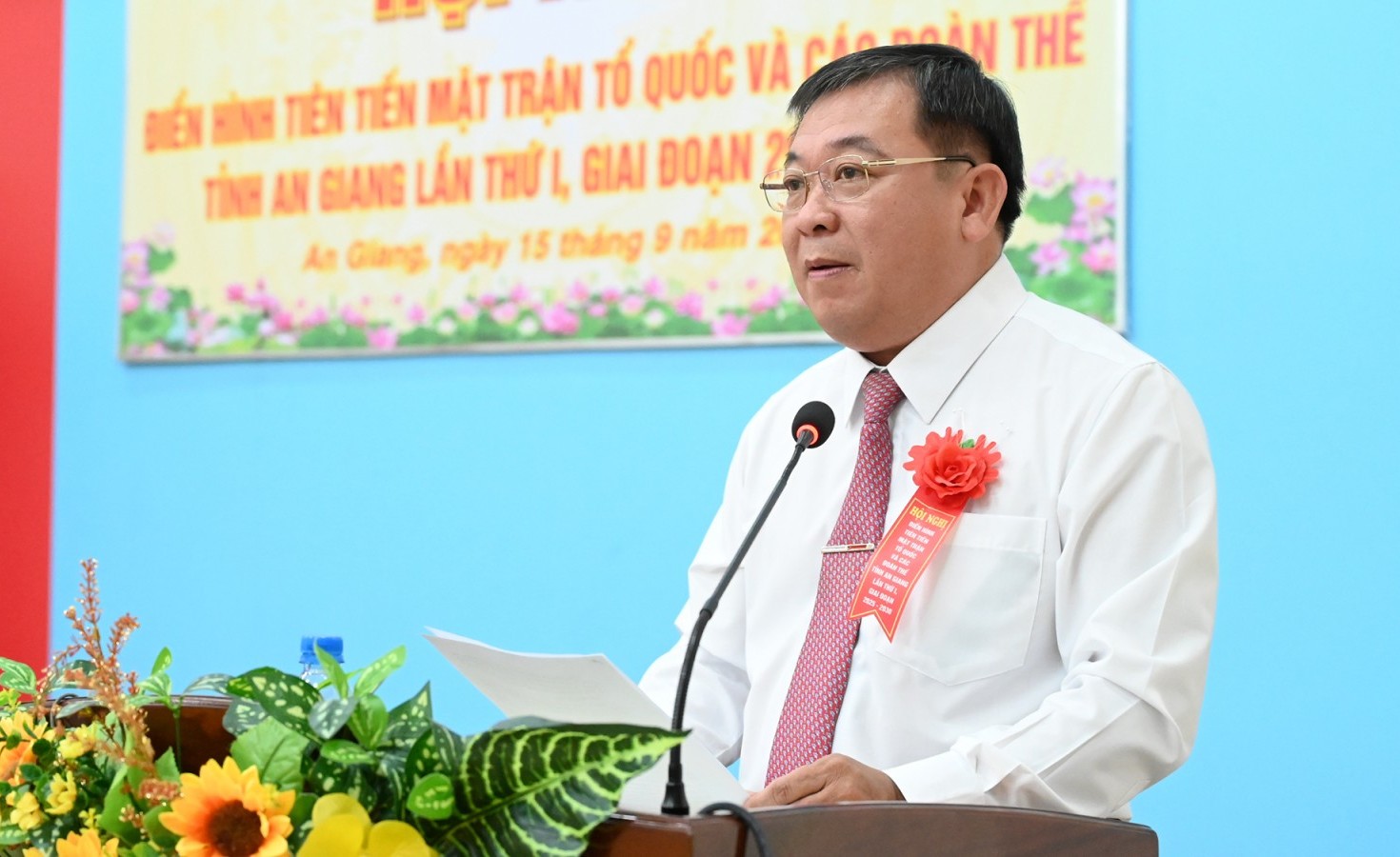 Đồng chí Lê Thanh Việt, Ủy viên Ban Thường vụ Tỉnh ủy, Phó Chủ tịch Thường trực Ủy ban MTTQ tỉnh An Giang phát biểu tại Hội nghị_Ảnh: baoangiang.com.vn