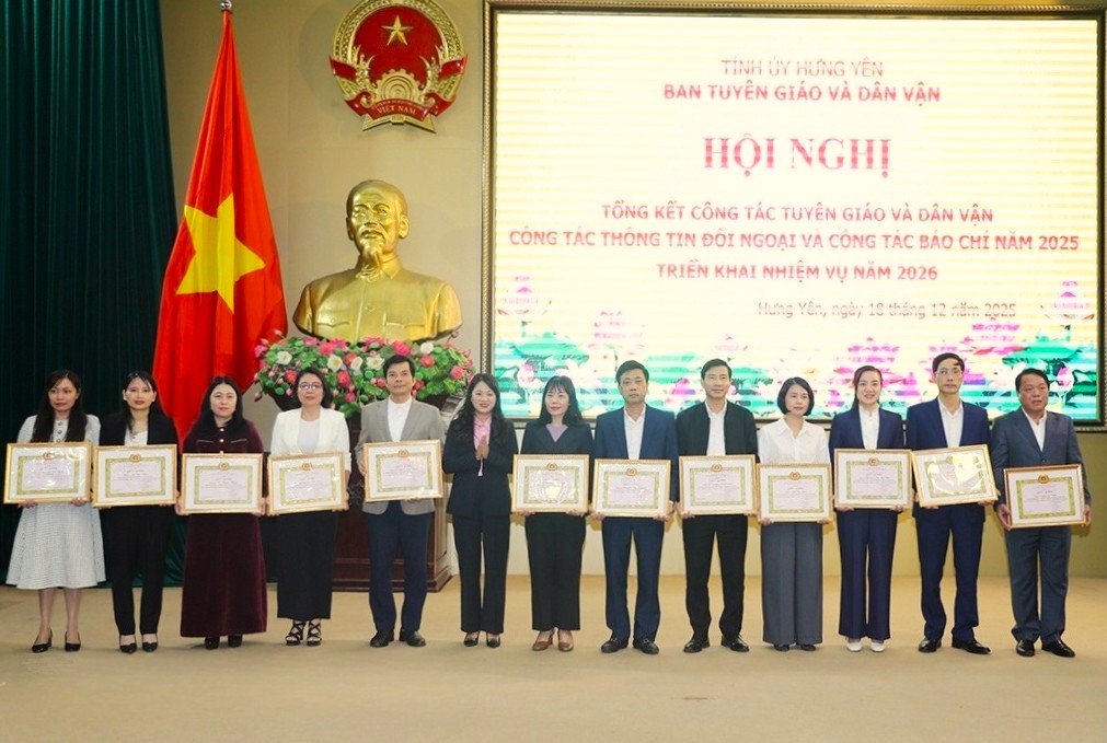 XDĐ - Ngày 18-12-2025, Ban Tuyên giáo và Dân vận Tỉnh ủy Hưng Yên tổ chức hội nghị tổng kết công tác tuyên giáo, dân vận, thông tin đối ngoại và báo chí năm 2025; triển khai nhiệm vụ năm 2026.