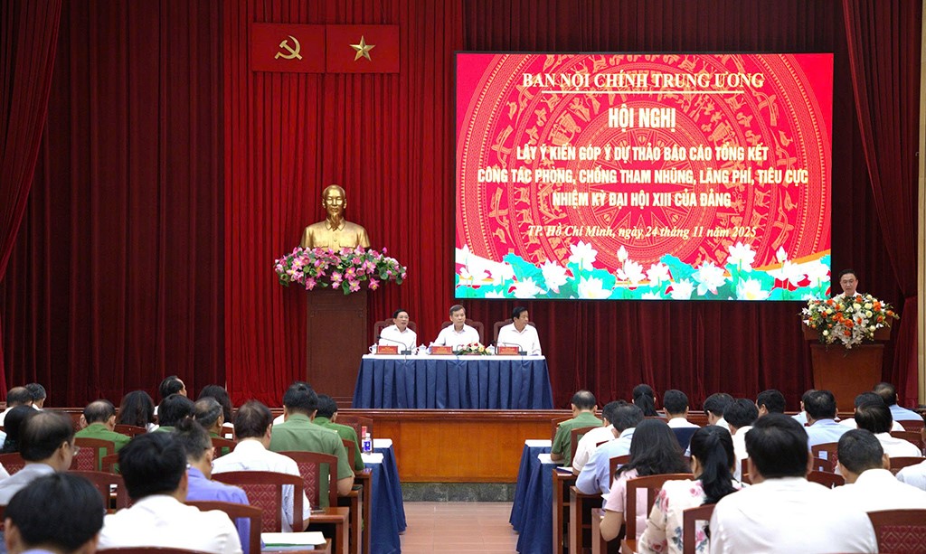 XDĐ - Ngày 24-11-2025, tại thành phố Hồ Chí Minh, Ban Nội chính Trung ương tổ chức Hội nghị lấy ý kiến góp ý vào dự thảo Báo cáo tổng kết công tác phòng, chống tham nhũng, lãng phí, tiêu cực nhiệm kỳ Đại hội XIII của Đảng.