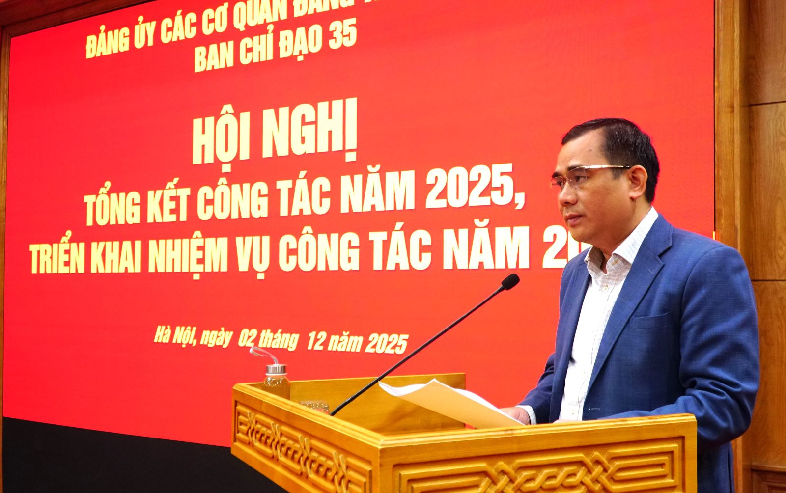 XDĐ - Ngày 2-12-2025, tại Hà Nội, Ban Chỉ đạo 35 Đảng ủy các cơ quan Đảng Trung ương tổ chức Hội nghị Tổng kết công tác năm 2025, triển khai nhiệm vụ công tác năm 2026. Đồng chí Nguyễn Thị Hoàng Vân, Phó Bí thư Đảng ủy, Trưởng Ban Chỉ đạo 35 Đảng ủy các cơ quan Đảng Trung ương chủ trì hội nghị.