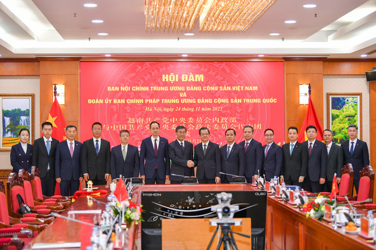 XDĐ - Ngày 24-11-2025, tại Hà Nội, đồng chí Lê Hồng Quang, Ủy viên Trung ương Đảng, Phó Trưởng Ban Nội chính Trung ương, Trưởng đoàn Ban Nội chính Trung ương hội đàm với đồng chí Vương Di Tinh, Phó Tổng Thư ký, Trưởng đoàn Uỷ ban Chính pháp Trung ương Đảng Cộng sản Trung Quốc.