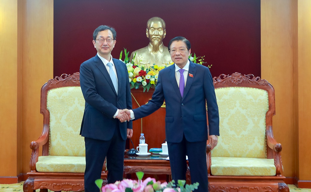 Ông Jeong Seung-yoon, Phó Chủ tịch kiêm Tổng thư ký Ủy ban Chống tham nhũng và Quyền công dân Hàn Quốc hội kiến Ủy viên Bộ Chính trị, Bí thư Trung ương Đảng, Trưởng Ban Nội chính Trung ương Phan Đình Trạc, ngày 23-5-2024_Ảnh: noichinh.vn