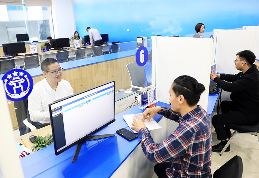Giải quyết thủ tục hành chính cho người dân tại Trung tâm Phục vụ hành chính công thành phố Hà Nội, Chi nhánh Tây Hồ_Ảnh: hanoimoi.vn
