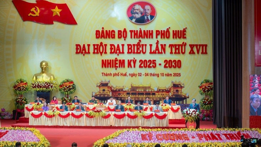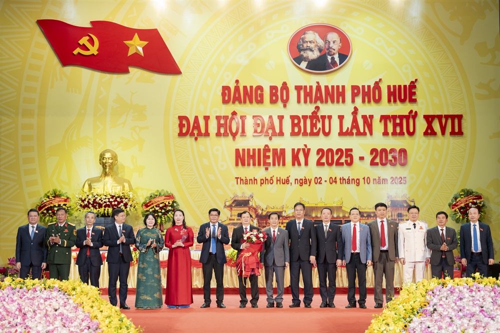 Đại hội Đại biểu Đảng bộ thành phố Huế lần thứ XVII, nhiệm kỳ 2025 - 2030 được tổ chức trọng thể từ ngày 2 - 4-10-2025 tại Nhà hát Sông Hương. Đại hội là sự kiện chính trị có ý nghĩa hết sức quan trọng, thể hiện ý chí và quyết tâm đổi mới, sáng tạo để xây dựng thành phố Huế phát triển theo hướng xanh - thông minh - giàu bản sắc; cùng với đất nước vững vàng bước vào kỷ nguyên phát triển mới của dân tộc. Với phương châm “Đoàn kết - Dân chủ - Kỷ cương - Phát triển”, Đại hội đại biểu Đảng bộ thành phố Huế lần thứ XVII, nhiệm kỳ 2025 - 2030 đã thành công tốt đẹp.
