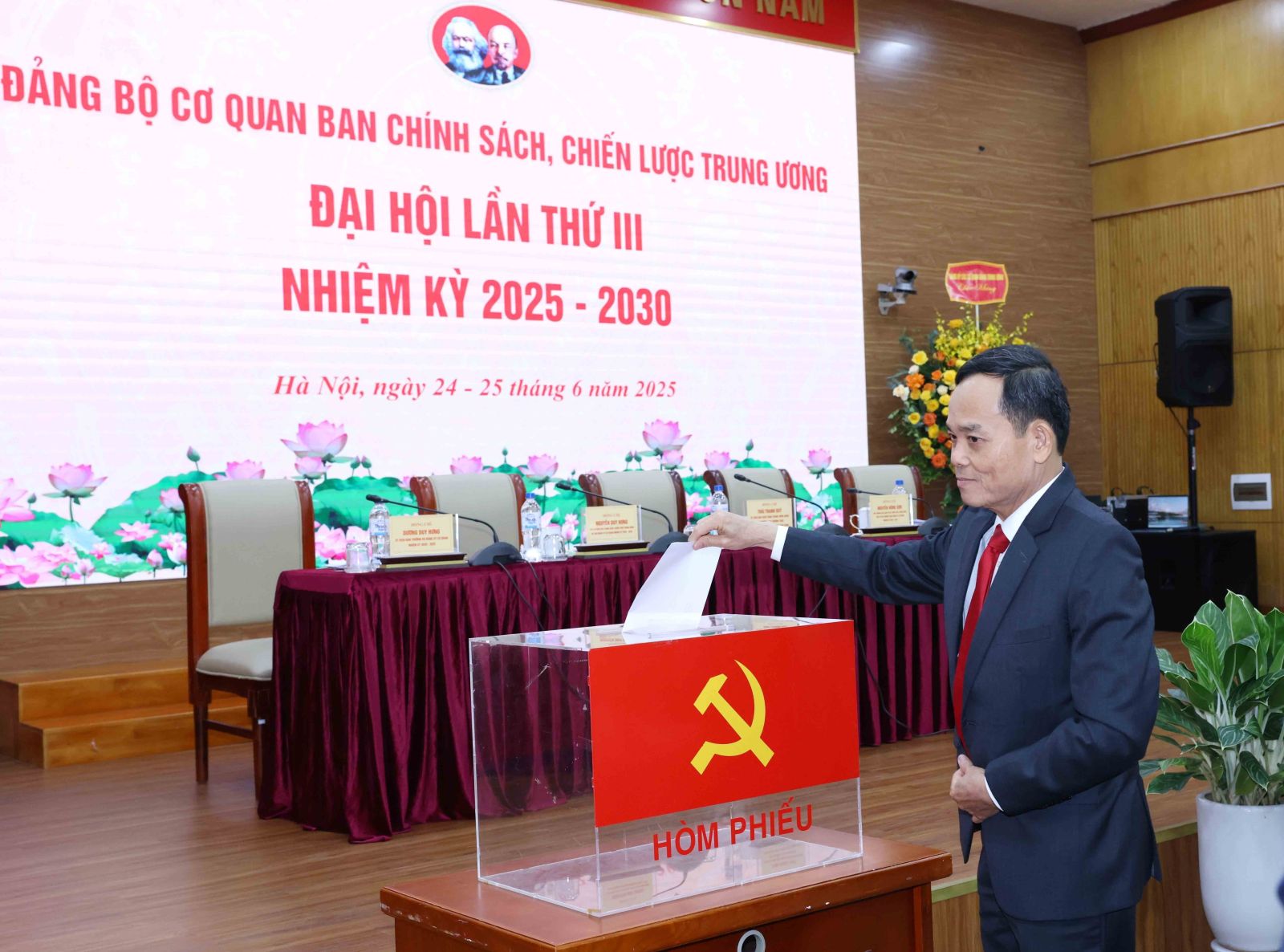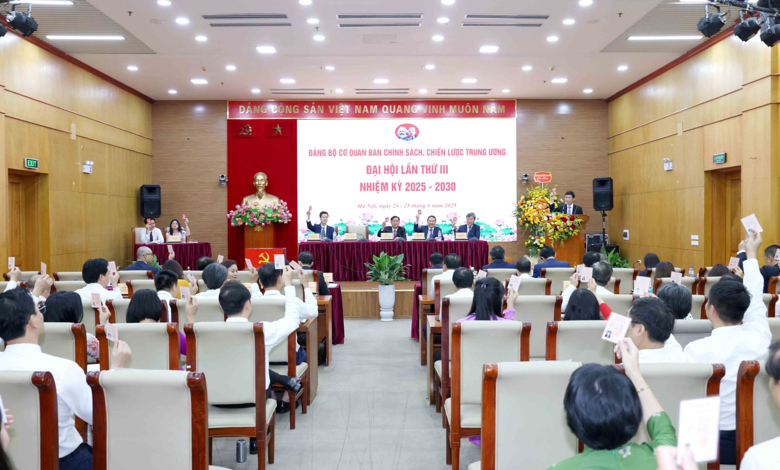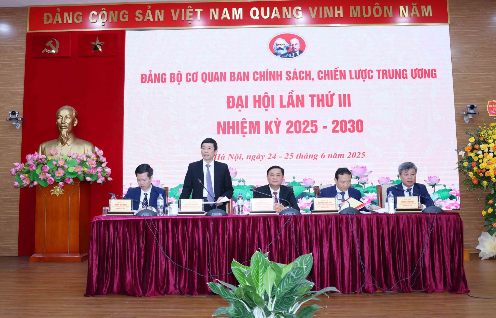Đại hội Đảng bộ cơ quan Ban Chính sách, chiến lược Trung ương lần thứ III diễn ra trong bối cảnh đất nước bước vào Kỷ nguyên mới - Kỷ nguyên vươn mình của dân tộc. Đây cũng là thời điểm Ban Chính sách, chiến lược Trung ương đang tập trung tổ chức triển khai công việc theo chức năng, nhiệm vụ, tổ chức bộ máy mới được kiện toàn theo Quyết định số 247-QĐ/TW, ngày 24/01/2025 của Bộ Chính trị. Đại hội là sự kiện chính trị quan trọng, đánh dấu một giai đoạn mới trong hoạt động của cơ quan. Chính vì vậy, chủ đề Đại hội được xác định là: Xây dựng Đảng bộ trong sạch, vững mạnh toàn diện; phát huy đoàn kết, trí tuệ; đổi mới tư duy, không ngừng sáng tạo; nâng cao chất lượng tham mưu chính sách, chiến lược phát triển đất nước trong Kỷ nguyên mới. Đại hội được tiến hành với phương châm: Đoàn kết - Dân chủ - Kỷ cương - Trí tuệ - Đột phá - Phát triển.
