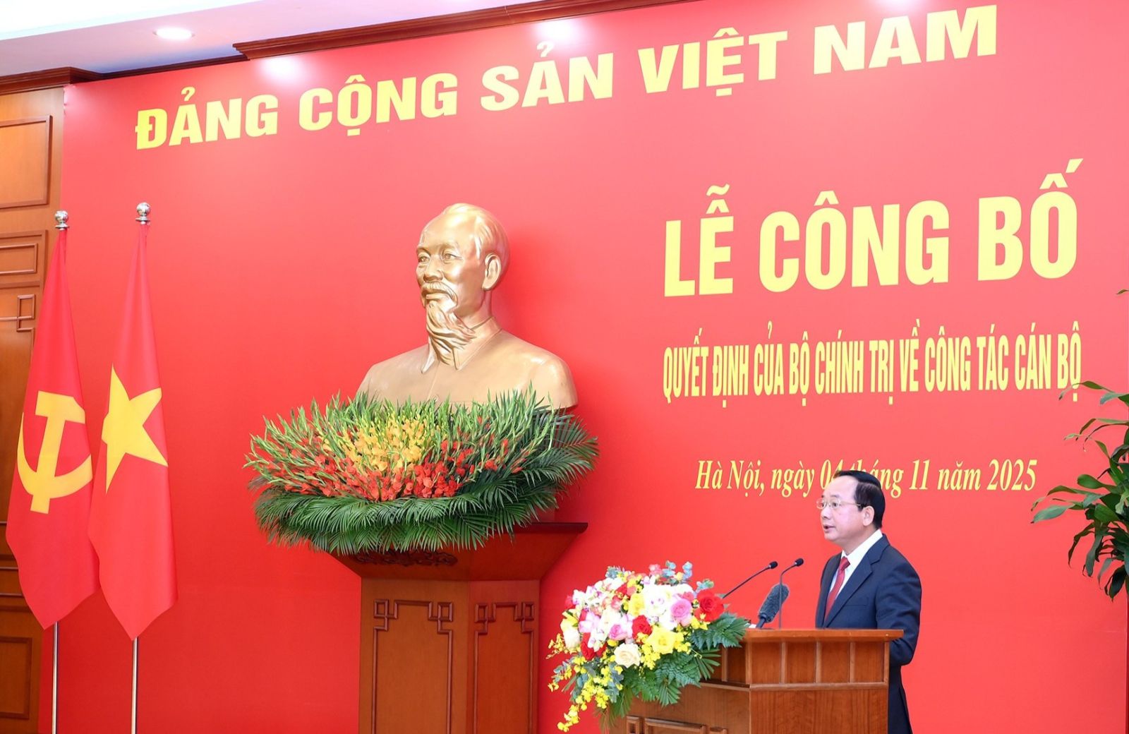 XDĐ - Ngày 4-11, tại Hà Nội, Văn phòng Trung ương Đảng tổ chức Lễ công bố Quyết định của Bộ Chính trị về công tác cán bộ. Tổng Bí thư Tô Lâm dự và trao Quyết định.