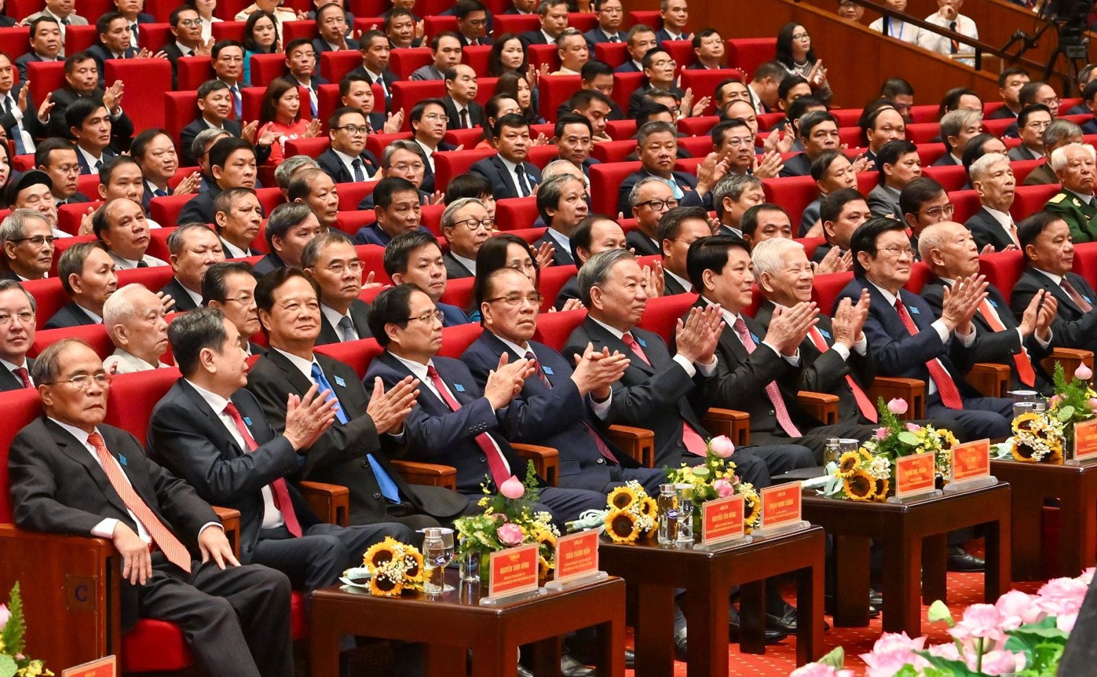 Tổng Bí thư Tô Lâm cùng các đồng chí lãnh đạo, nguyên lãnh đạo Đảng, Nhà nước và đại biểu tham dự Đại hội.