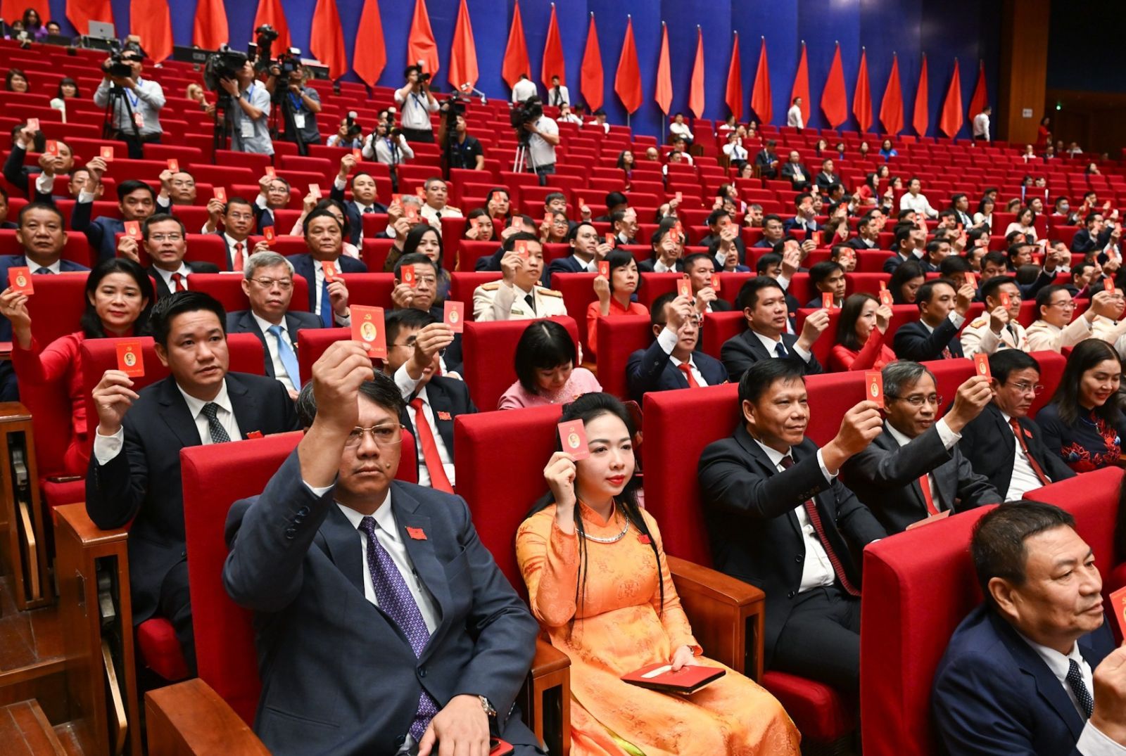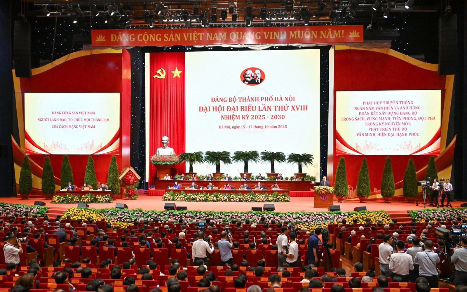 Quang cảnh Đại hội đại biểu Đảng bộ thành phố Hà Nội lần thứ XVIII, nhiệm kỳ 2025-2030.