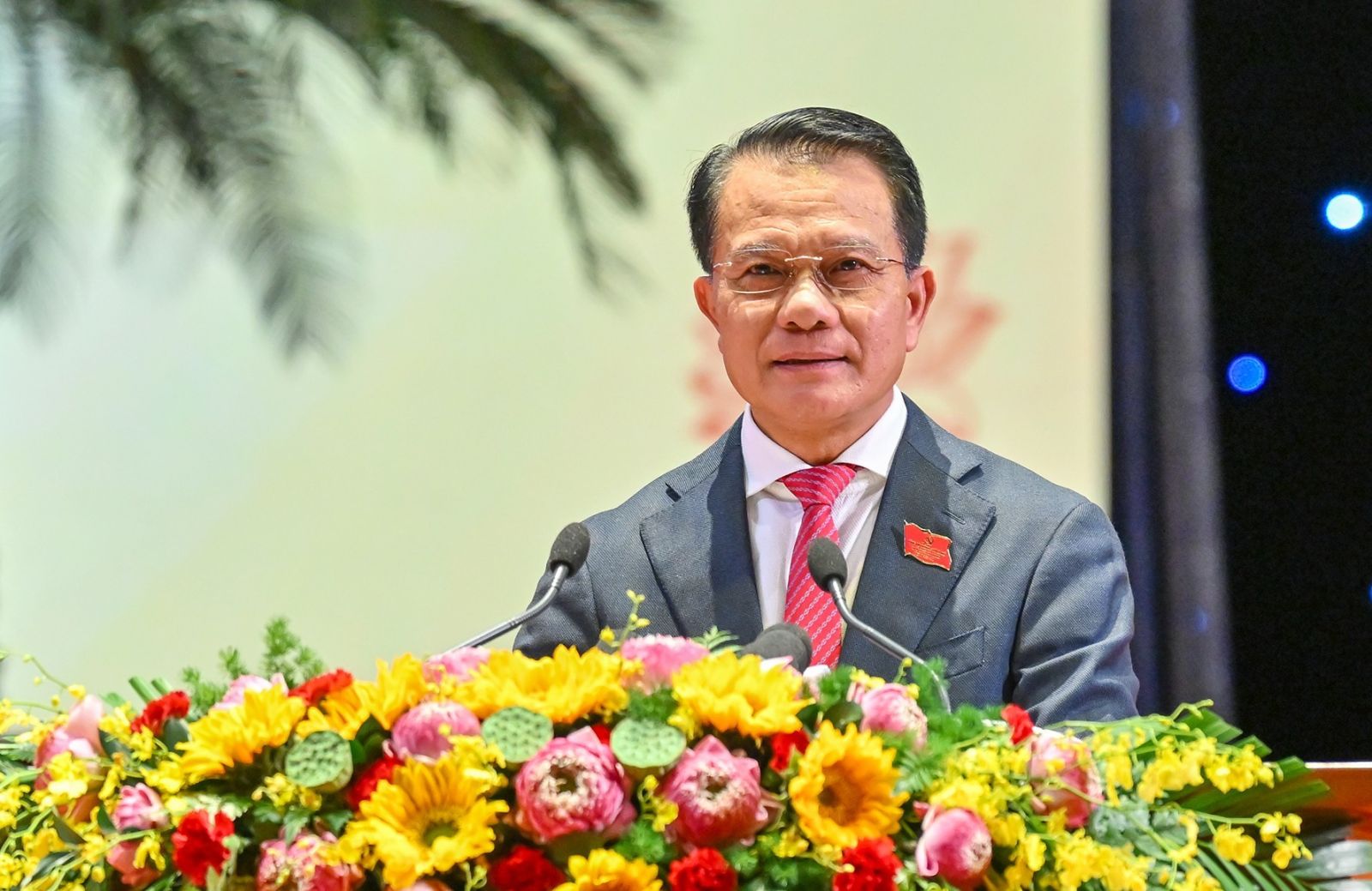 Phó Bí thư Thường trực Thành ủy Hà Nội Nguyễn Văn Phong trình bày Báo cáo chính trị Đại hội đại biểu Đảng bộ thành phố Hà Nội lần thứ XVIII.