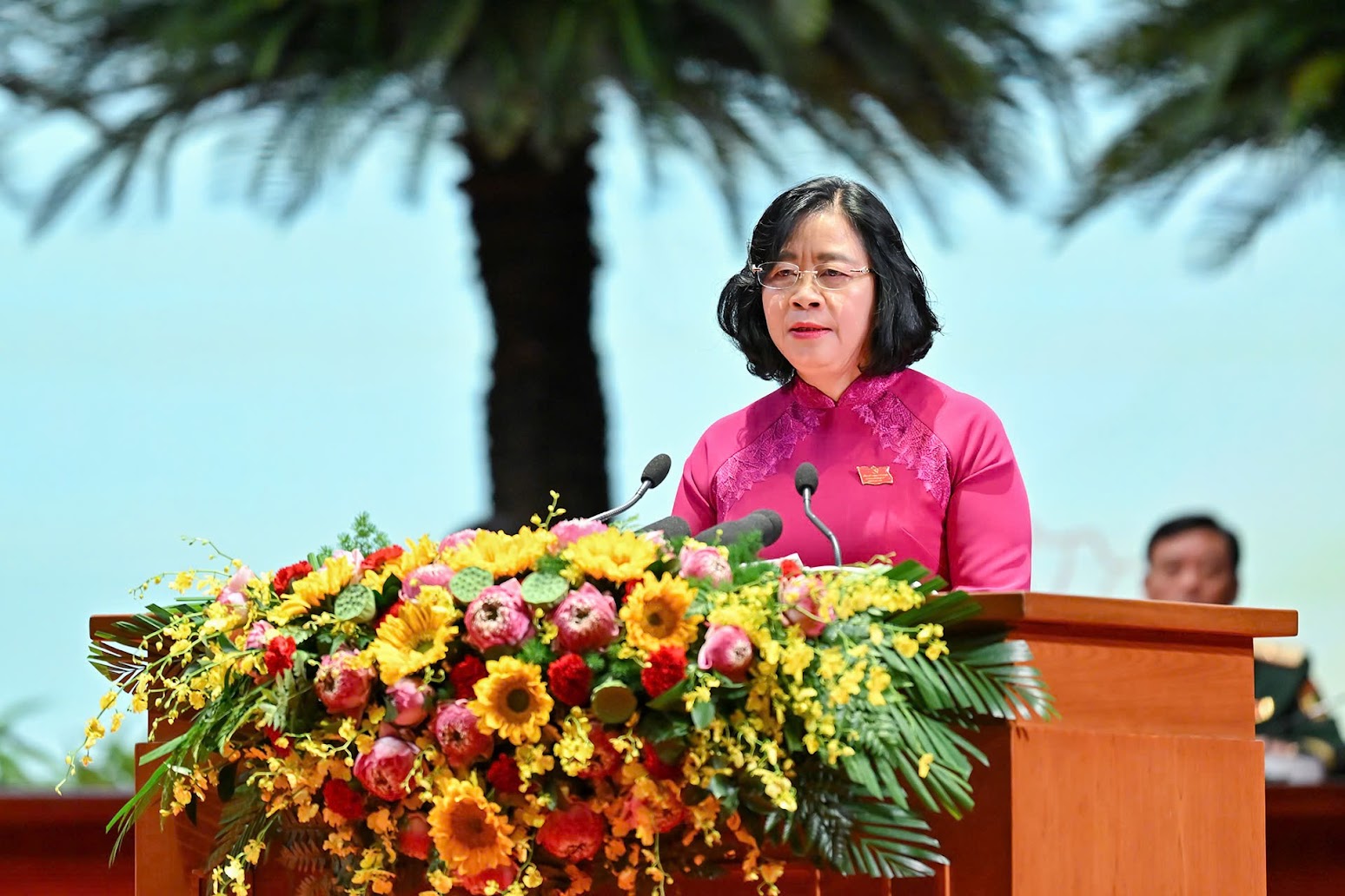 Bí thư Thành ủy Hà Nội Bùi Thị Minh Hoài phát biểu khai mạc Đại hội.
