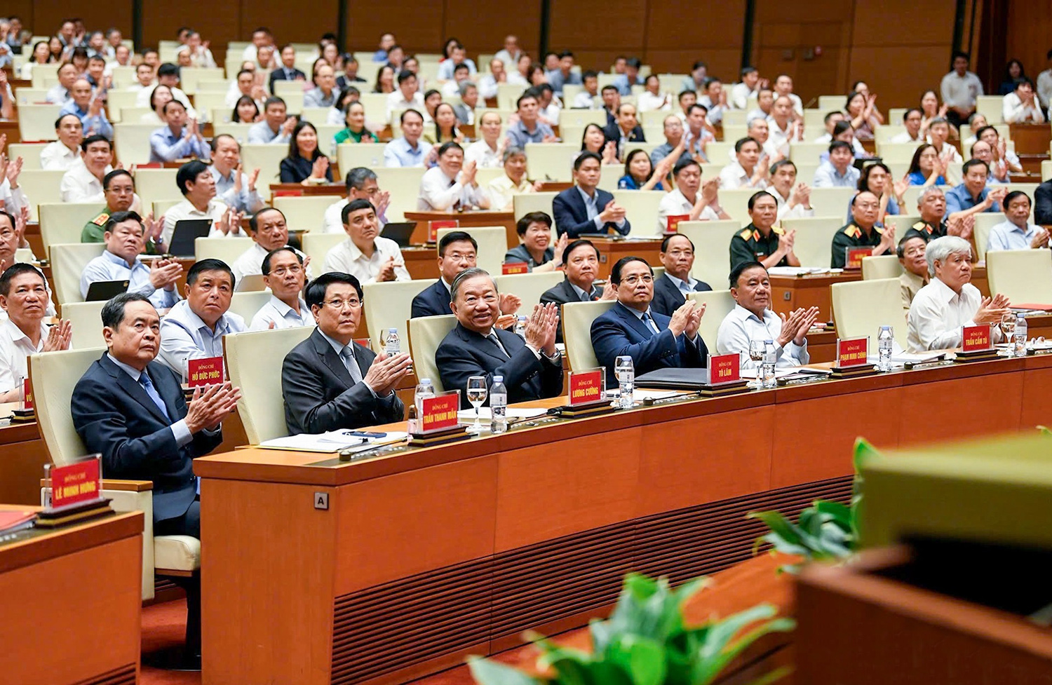 Tôi kêu gọi toàn hệ thống chính trị, các cấp ủy, chính quyền, Mặt trận Tổ quốc và các đoàn thể; kêu gọi cộng đồng doanh nghiệp, các nhà ngoại giao, đội ngũ trí thức, nhà giáo, thầy thuốc, công nhân, nông dân, thanh niên cả nước đồng lòng, đồng sức, chung tay thực hiện. Mỗi người một việc cụ thể, mỗi ngày một kết quả cụ thể, kiên trì, bền bỉ, có phương pháp, có kỷ luật, có sáng tạo. Hãy làm cho tinh thần các nghị quyết được triển khai hôm nay thấm vào mọi cấp, mọi ngành, vào mọi thành phần xã hội, tới từng phường xã, làng bản, thôn xóm, tới từng lớp học, từng phân xưởng, từng cánh đồng, từng ngôi nhà, từng người dân; biến khát vọng thành hành động, biến hành động thành kết quả, biến kết quả thành niềm tin mới.